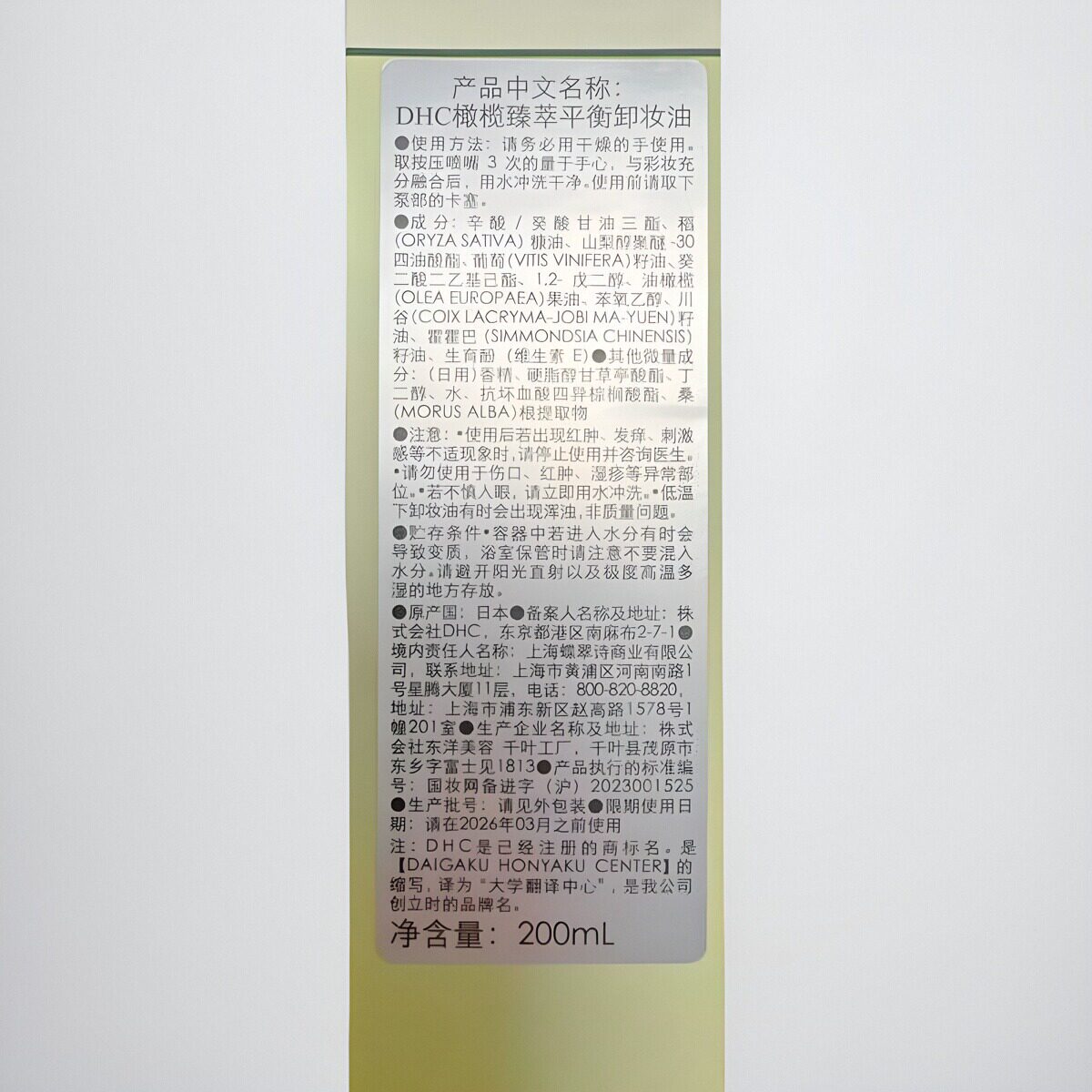 2028年2月到期DHC橄榄臻萃平衡卸妆油200ml