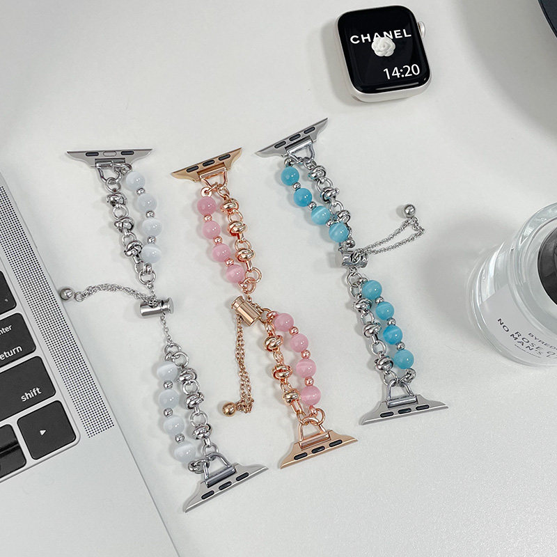 5苹果手表女生猫眼石iwatchs10小香风se3高级替换带 猫眼石手链适用applewatchs10表带s11夏天iwatch9