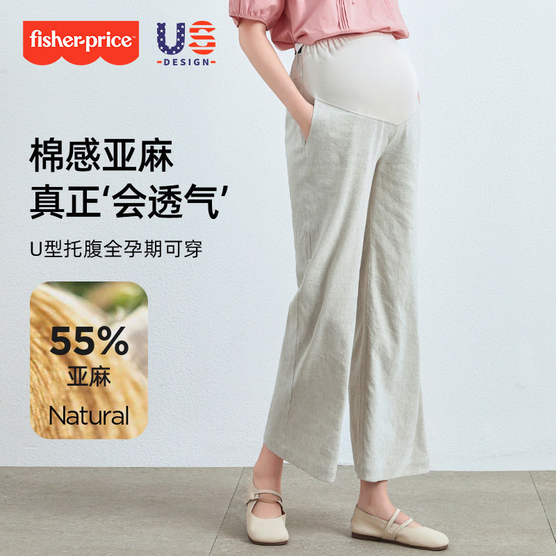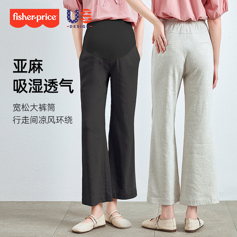 直筒微喇叭九分休闲孕妇夏装 孕妇亚麻阔腿裤 外穿宽松大码 薄款 夏季