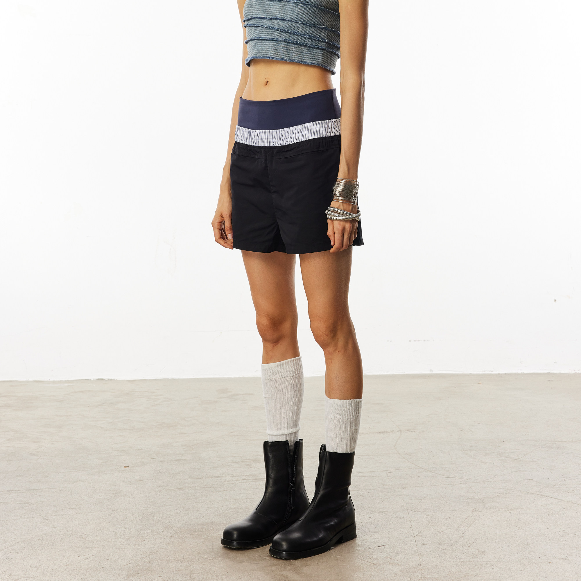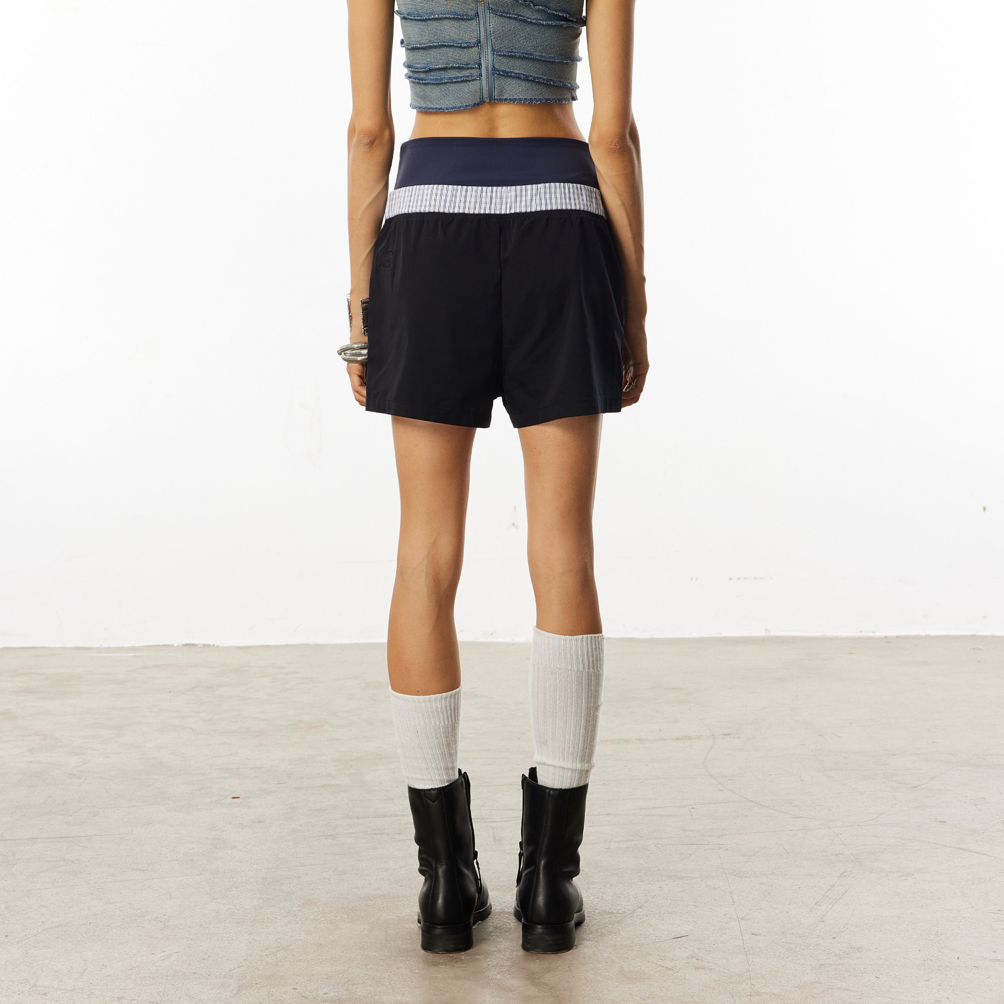 WILDERSHORE 25SS原创双腰头格纹拼接结构休闲插袋运动短裤