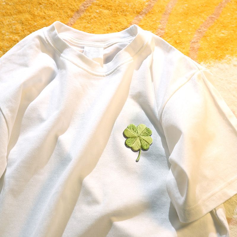 t恤男女情侣装 宽松百搭T半袖 夏季 大码 上衣 新款 刺绣四叶草纯棉短袖
