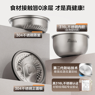 美 IH电饭煲家用电饭锅3到4人0涂层316L不锈钢不粘内胆煮小米粥