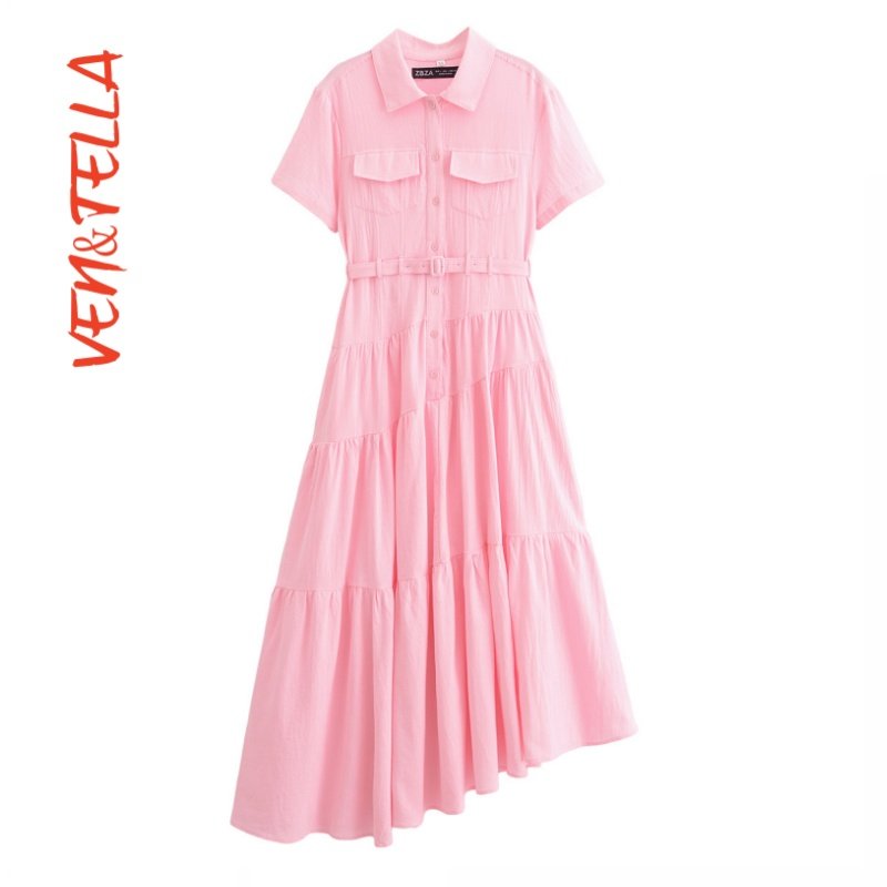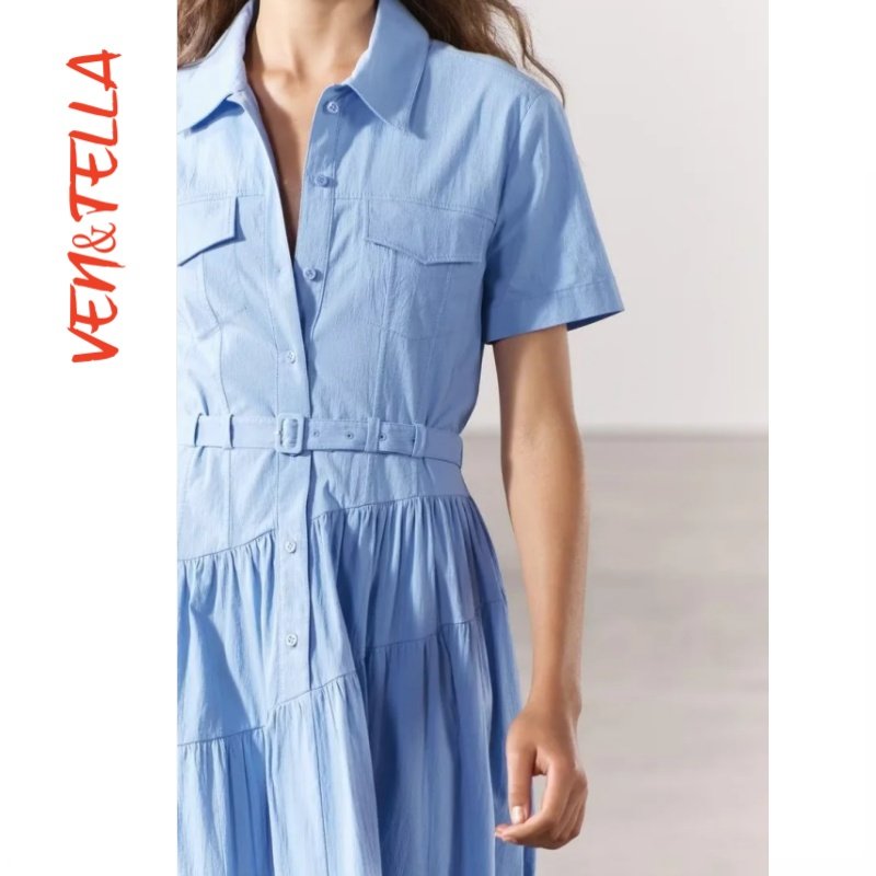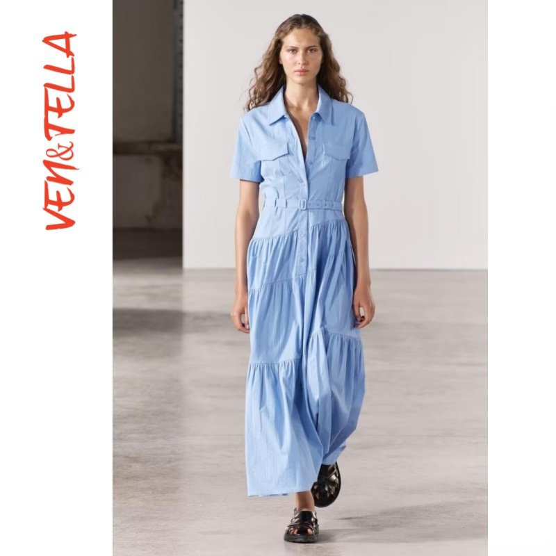VEN&TELLA秋冬欧美风 2240371 配腰带衬衣式 连衣裙