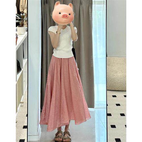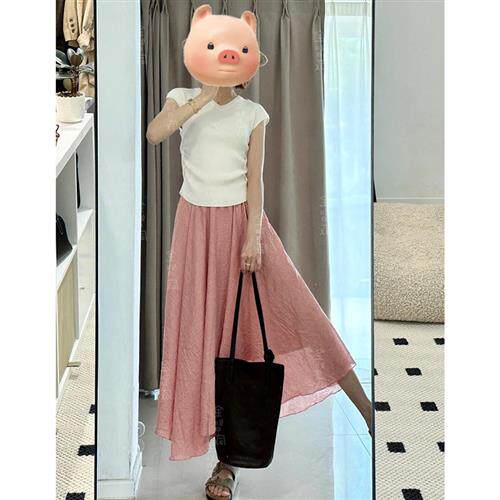 夏天多巴胺穿搭盐系轻熟粉色半身裙子两件套装 夏装 搭配一整套时尚