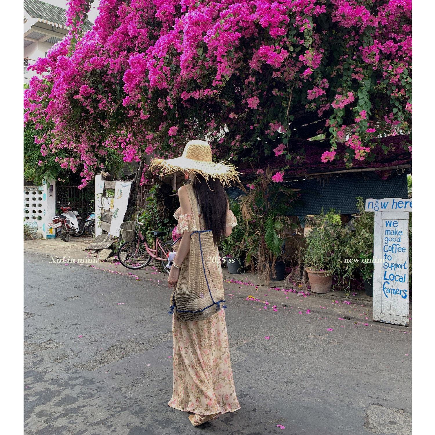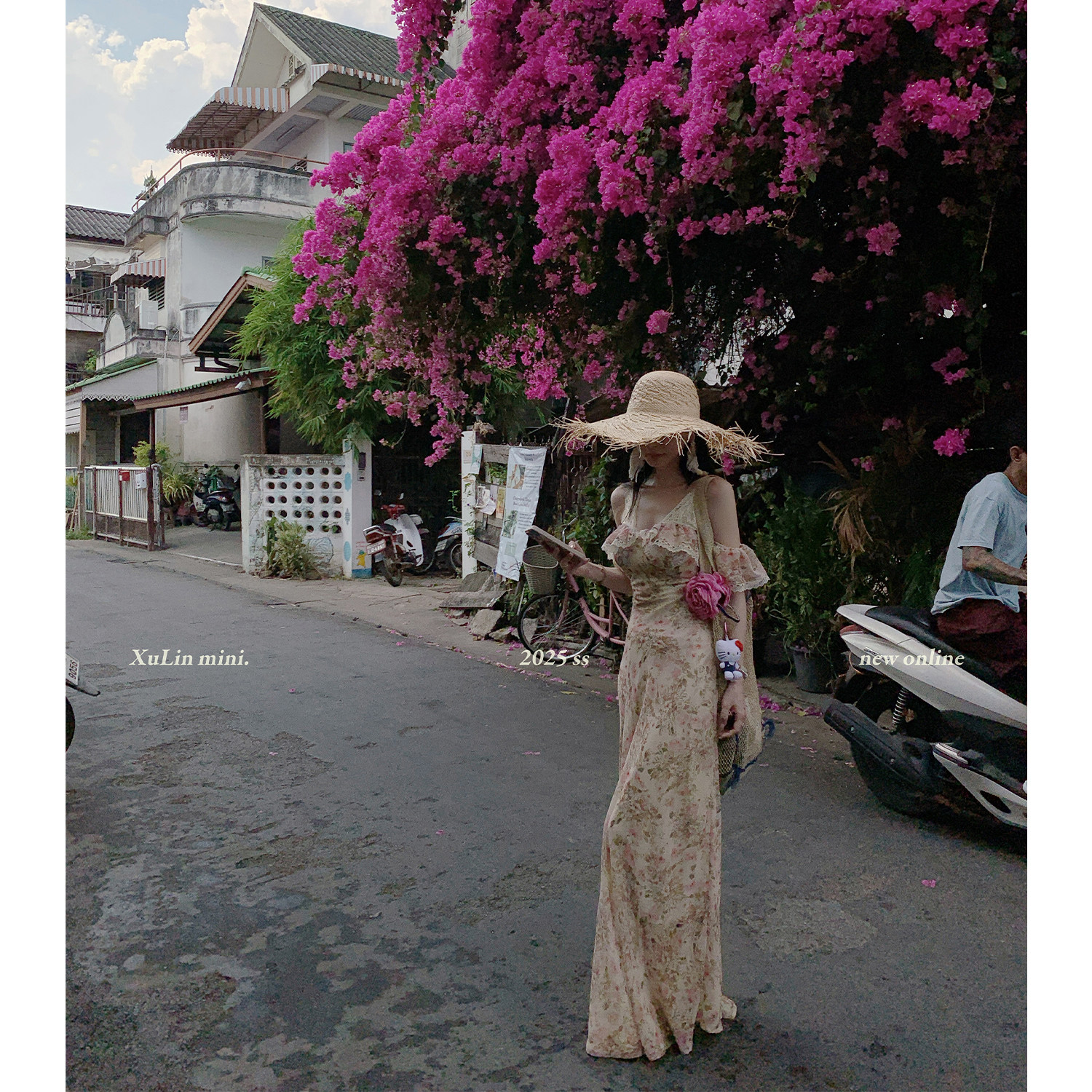 MINISTUDIO徐琳「塞纳花房」度假温柔风一字肩法式 碎花茶歇连衣裙