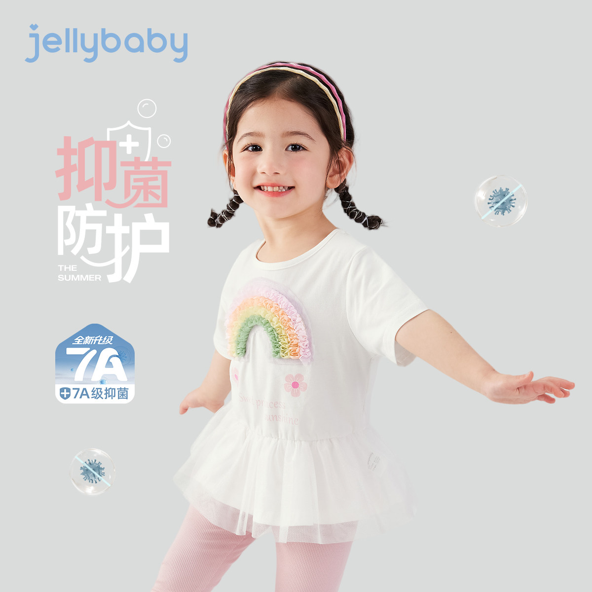 上衣 5宝宝夏季 女童t恤短袖 2026甜美彩虹小女孩衣服小儿童洋气夏装