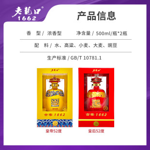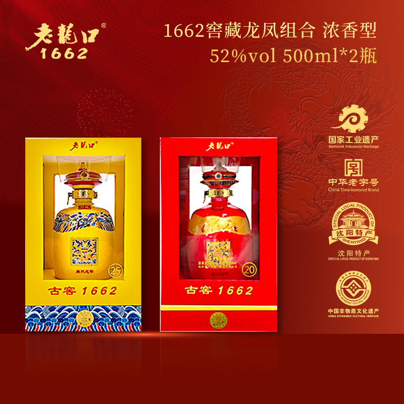 老龙口龙凤呈祥1662古窖系列2瓶500ml收藏装 52度白酒送礼酒送长辈