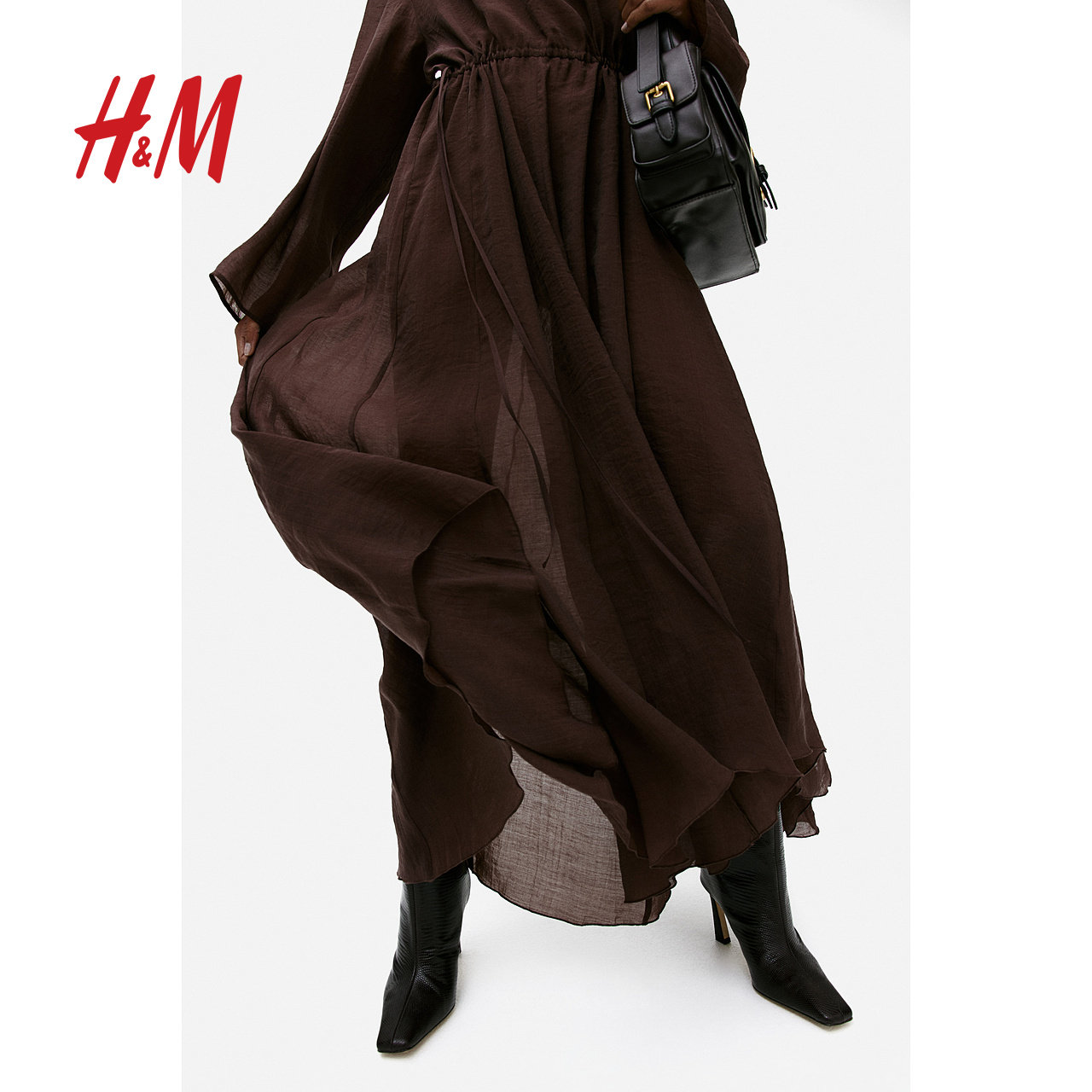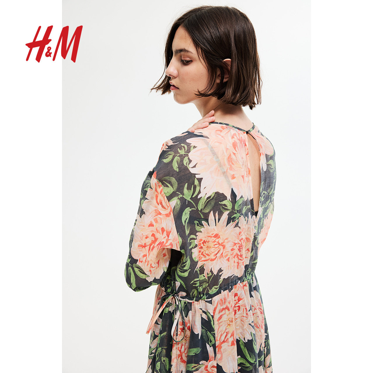 HM女装 气质优雅休闲抽绳连衣裙1291708 连衣裙春夏原野浪漫风时尚