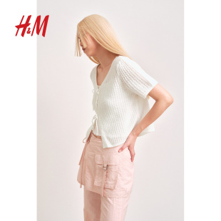 泡泡短miu系开衫 HM女装 前部系带开衫 春季 1286468 针织衫