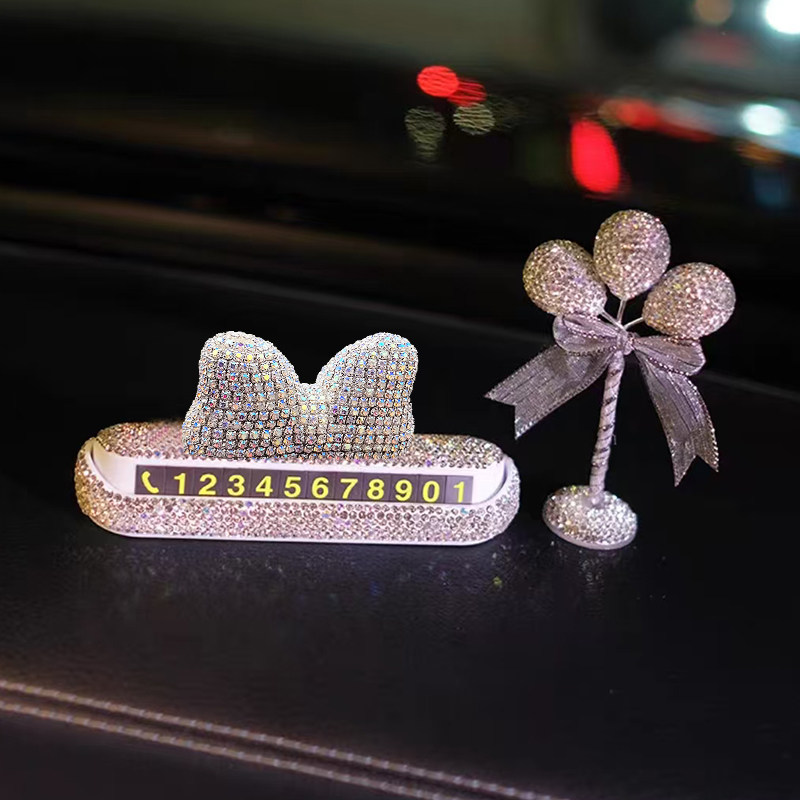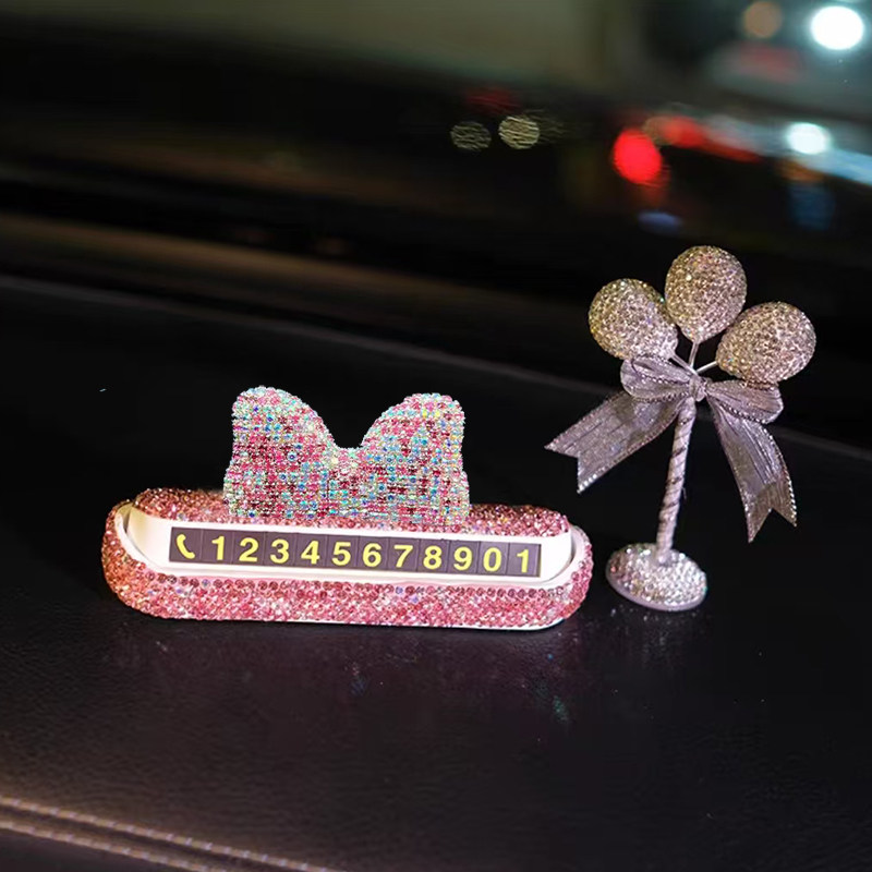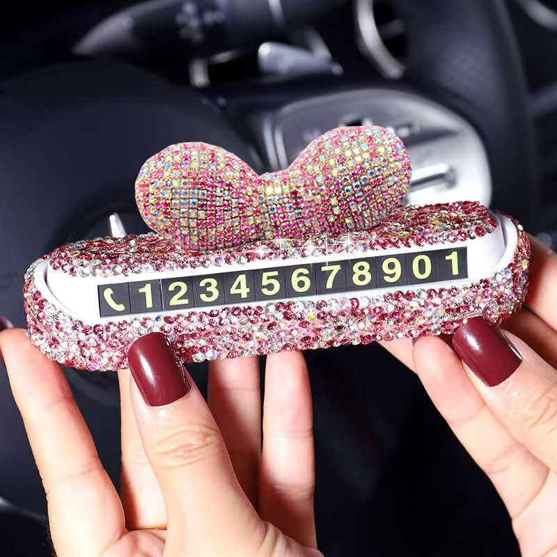 卡定制移车 挪车电话号码 镶钻新款 蝴蝶结卡通汽车临时停车牌隐藏式