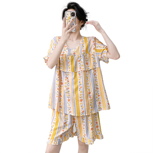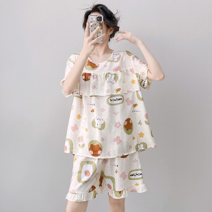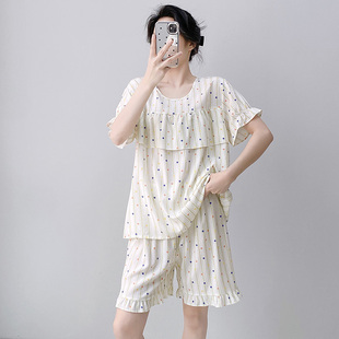 凉感棉绸套装 防凸点人造棉睡衣女夏季 短裤 短袖 甜美外穿家居服 薄款