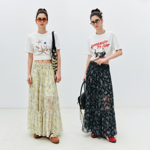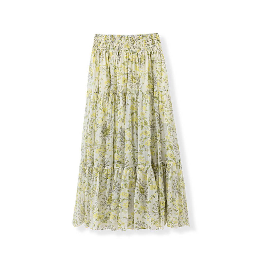 法式 1OO%人丝顺纡绉 度假风碎花腰果印花半裙 塞纳河絮语