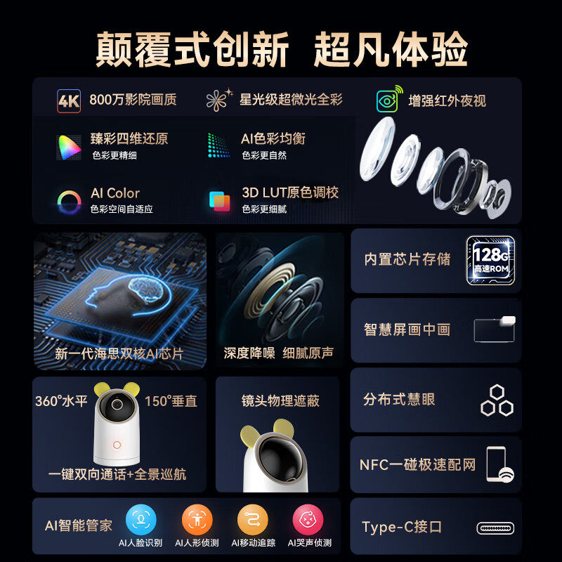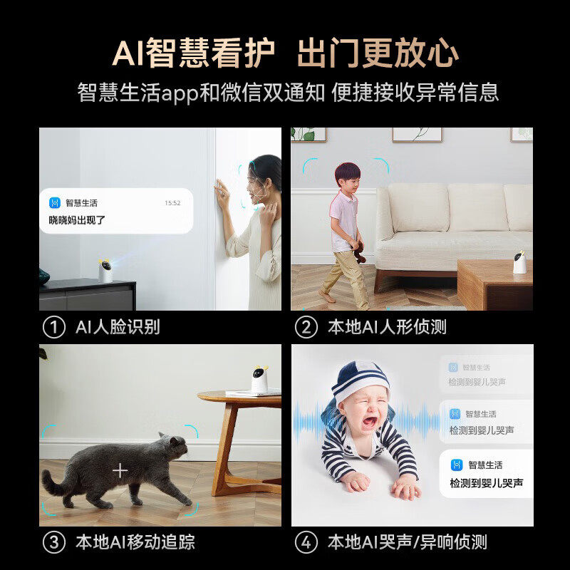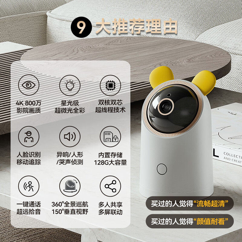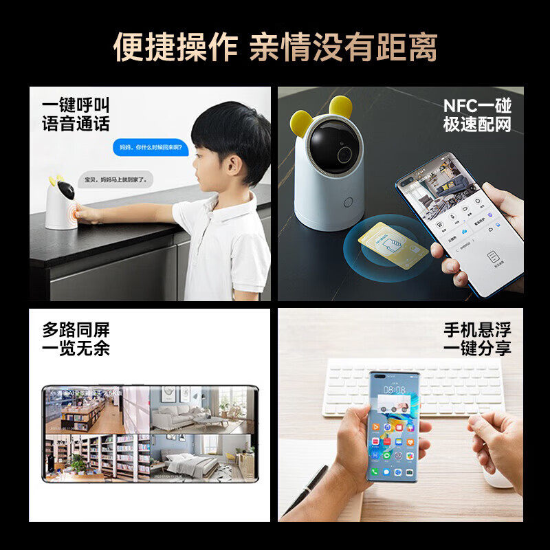 鸿蒙智选海雀Pro智能摄像头4K版 无线监控360度无死角家用手机远程