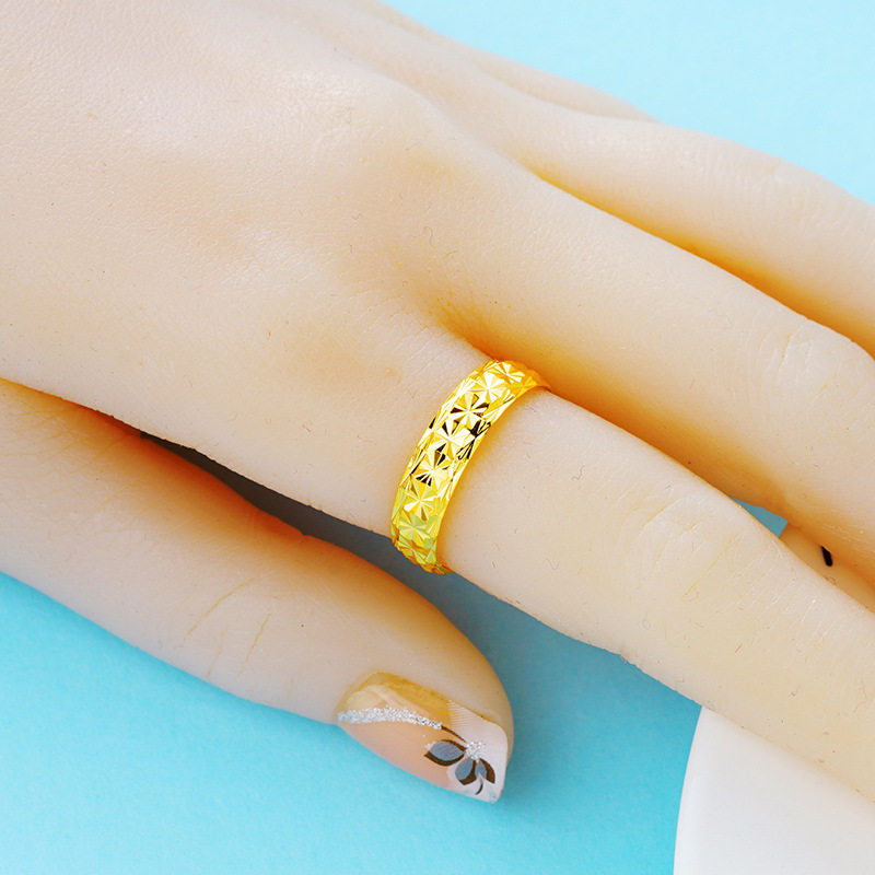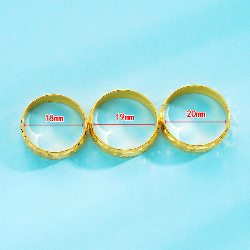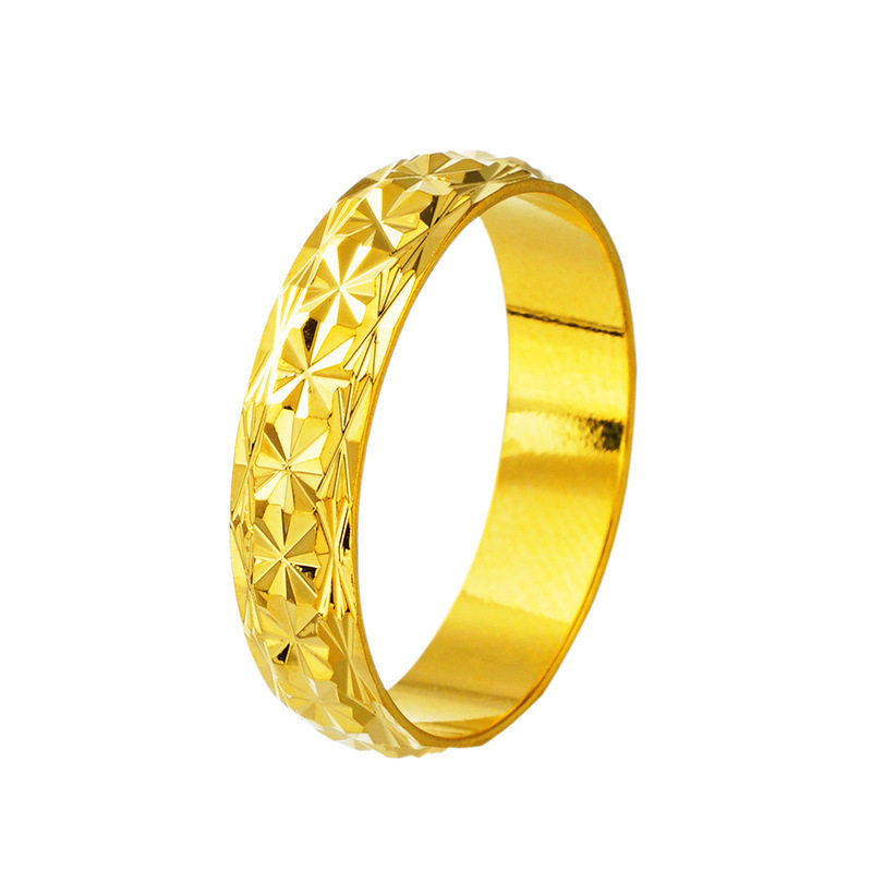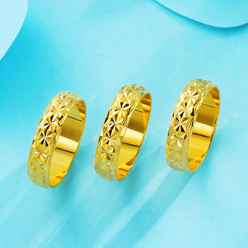 黄铜镀金情侣戒指男女款 5mm车米字花闭口圈戒 镀24K真金沙金指环