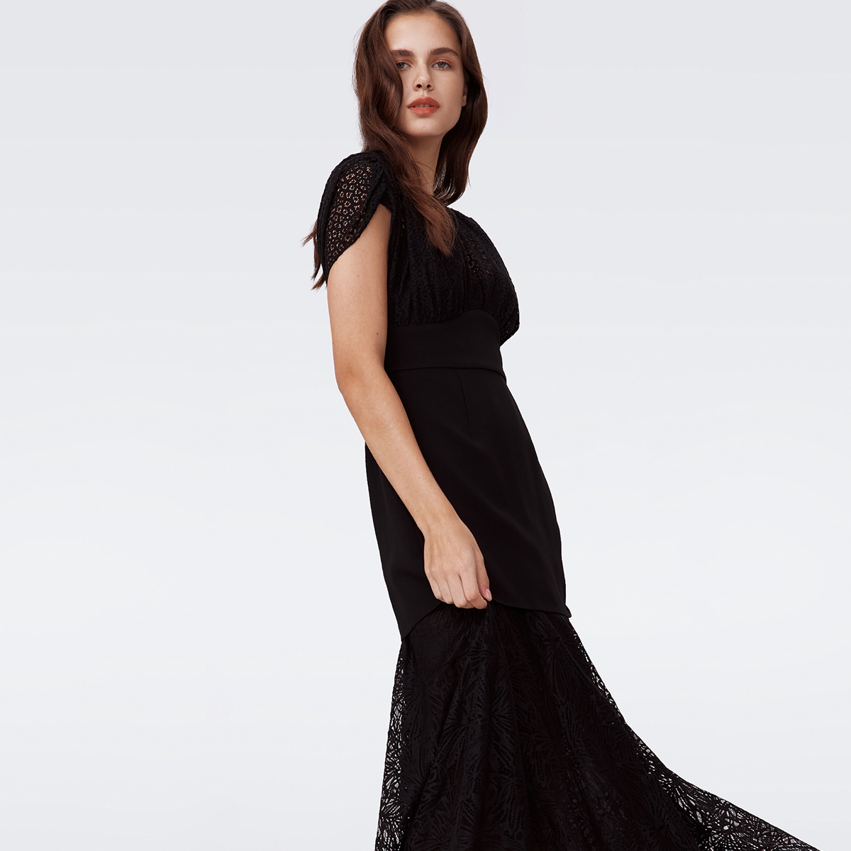 连衣裙DS2S054 DVF优雅气质曜石黑轻礼服长款 小黑裙