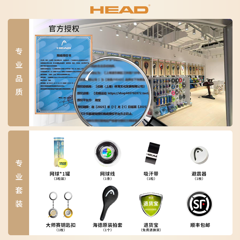 HEAD海德L5网球拍德约科维奇金满贯同款 黑拍SPEED小德专业网球拍