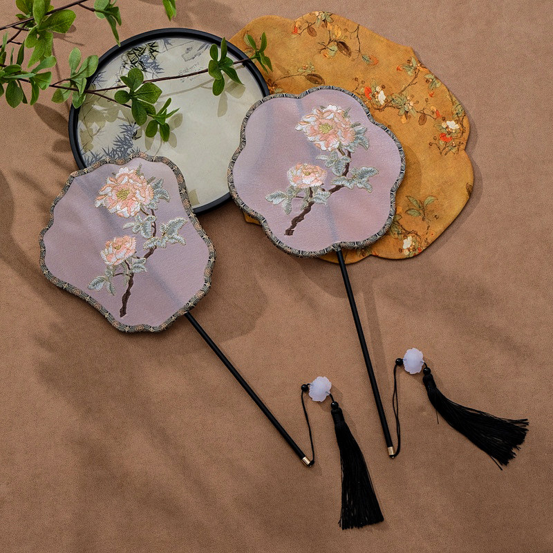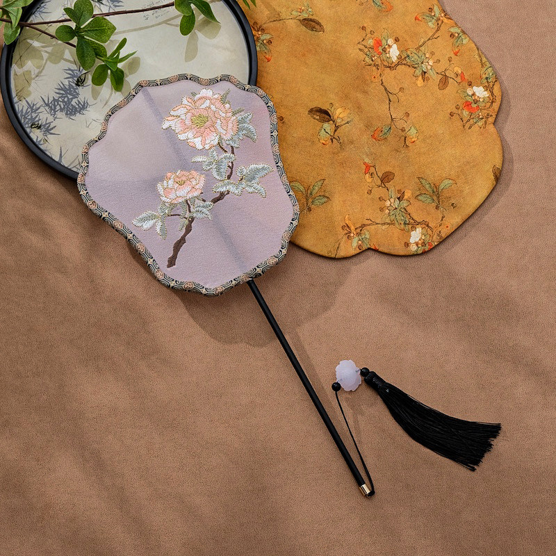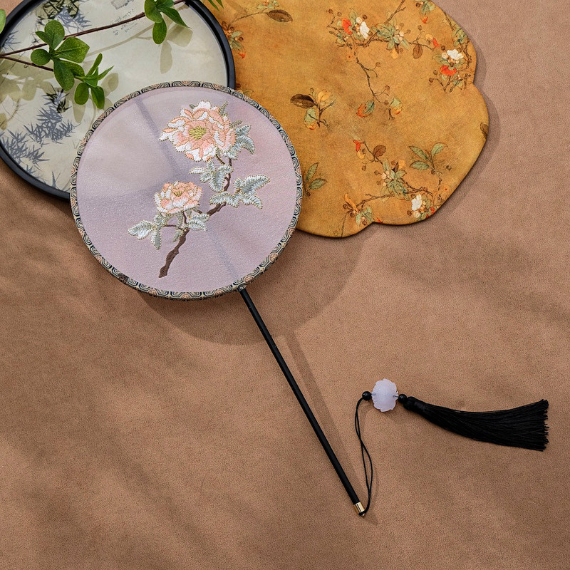 牡丹花刺绣团扇古典百搭古风绣花扇子国风拍照道具扇舞蹈手持扇