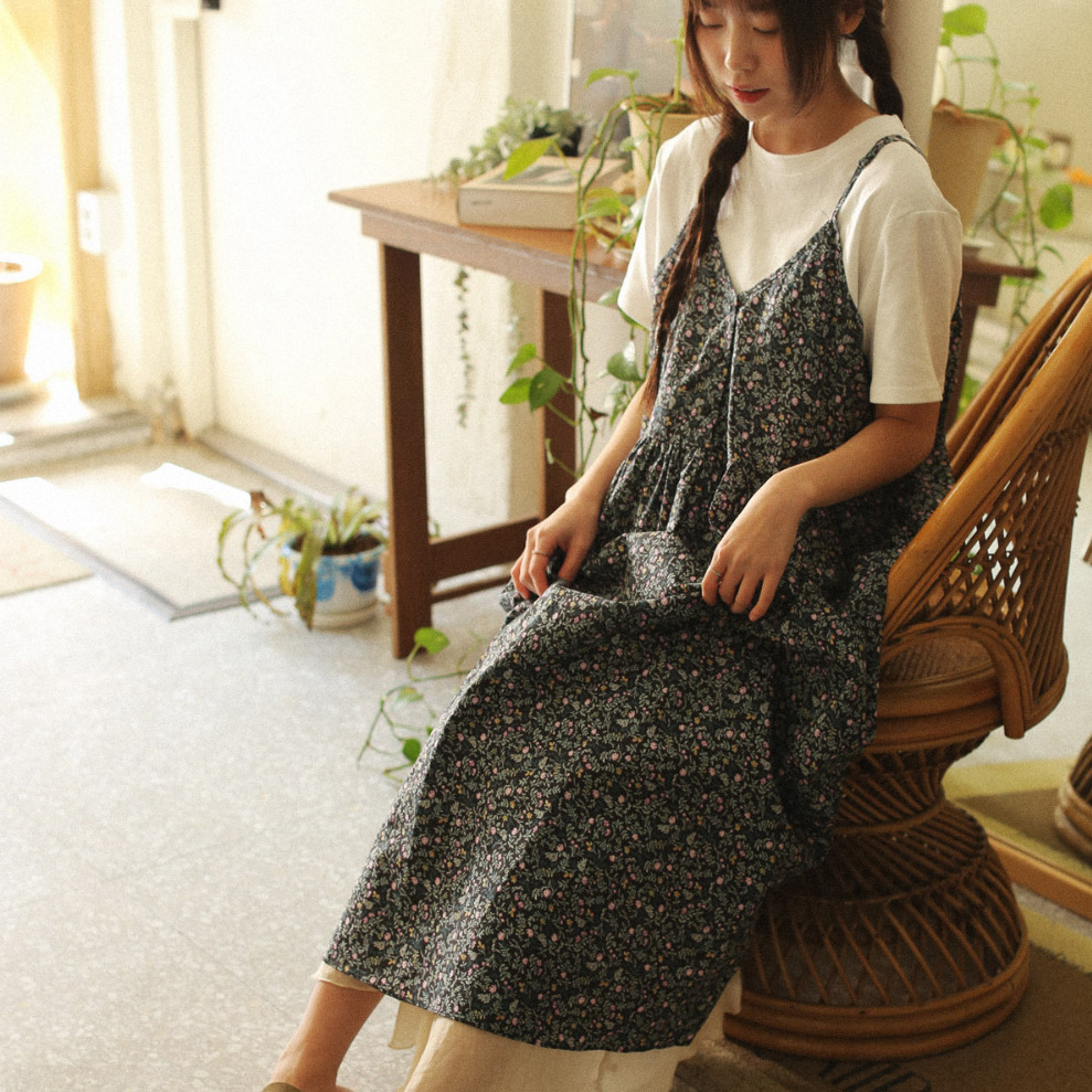 2025春新 韩国代购 森系复古碎花吊带连衣裙女中长裙 妹妹家 ㊣