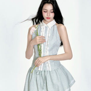 易碎商店·夏日青柠薄荷绿格甜美上衣裙子蓬蓬裙两件套装 现货