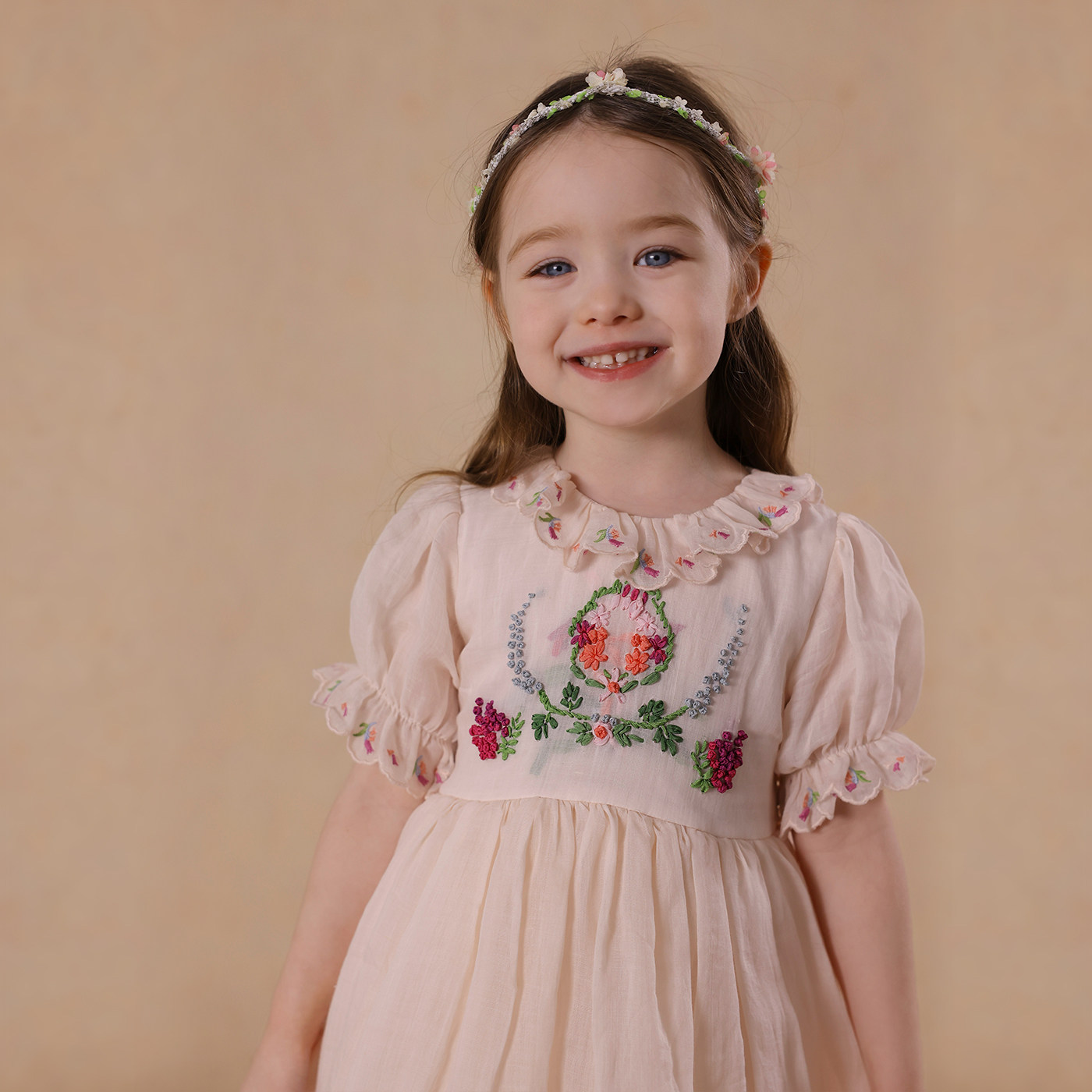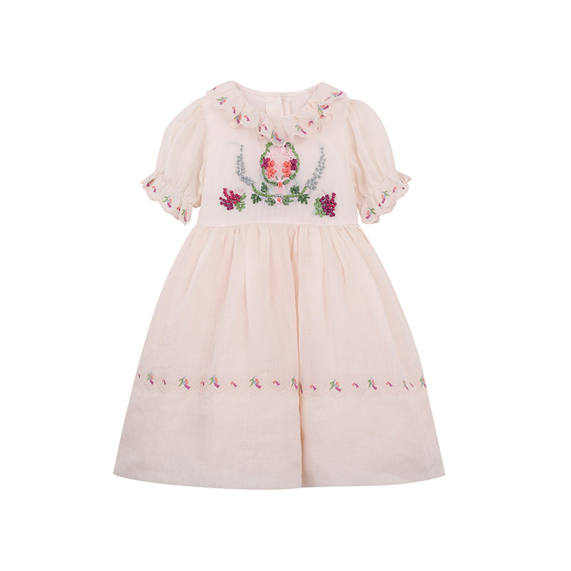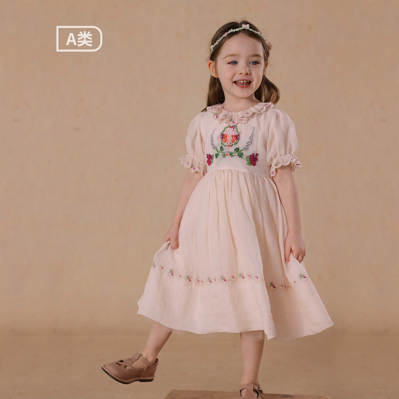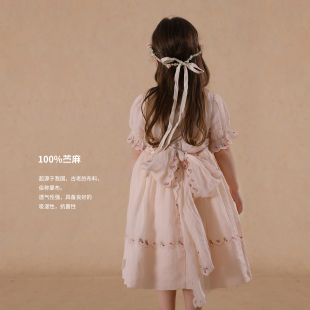 允儿妈女童纯苎麻手工刺绣连衣裙宝宝夏季 长裙儿童裙子潮 复古法式