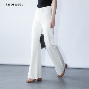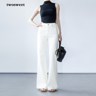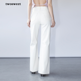 提臀毛边长裤 加绒高腰修身 2025冬季 白色蝴蝶结少女微喇叭牛仔裤
