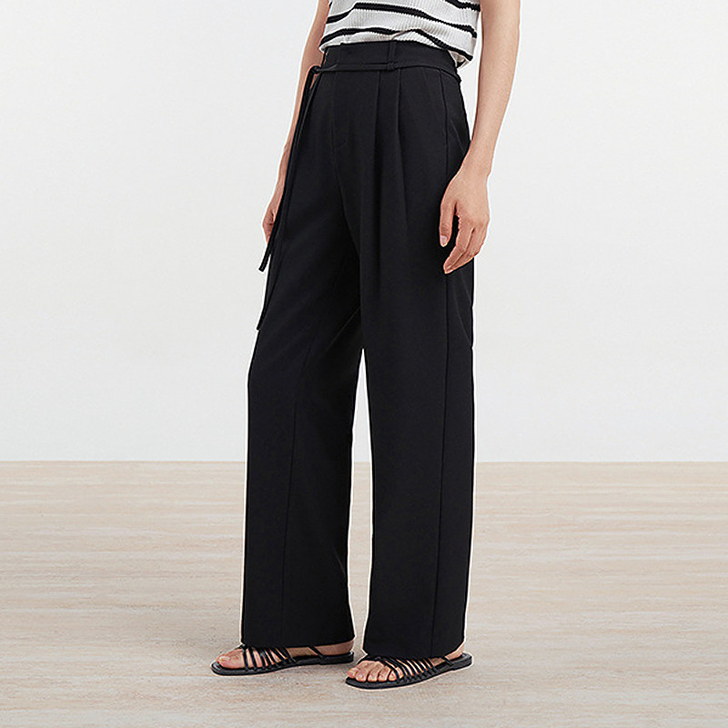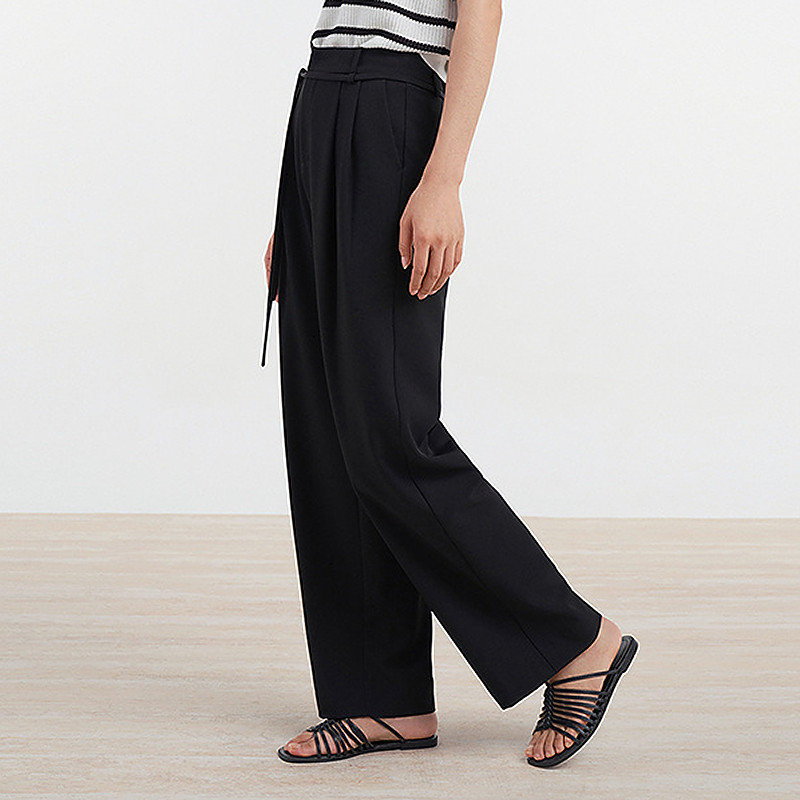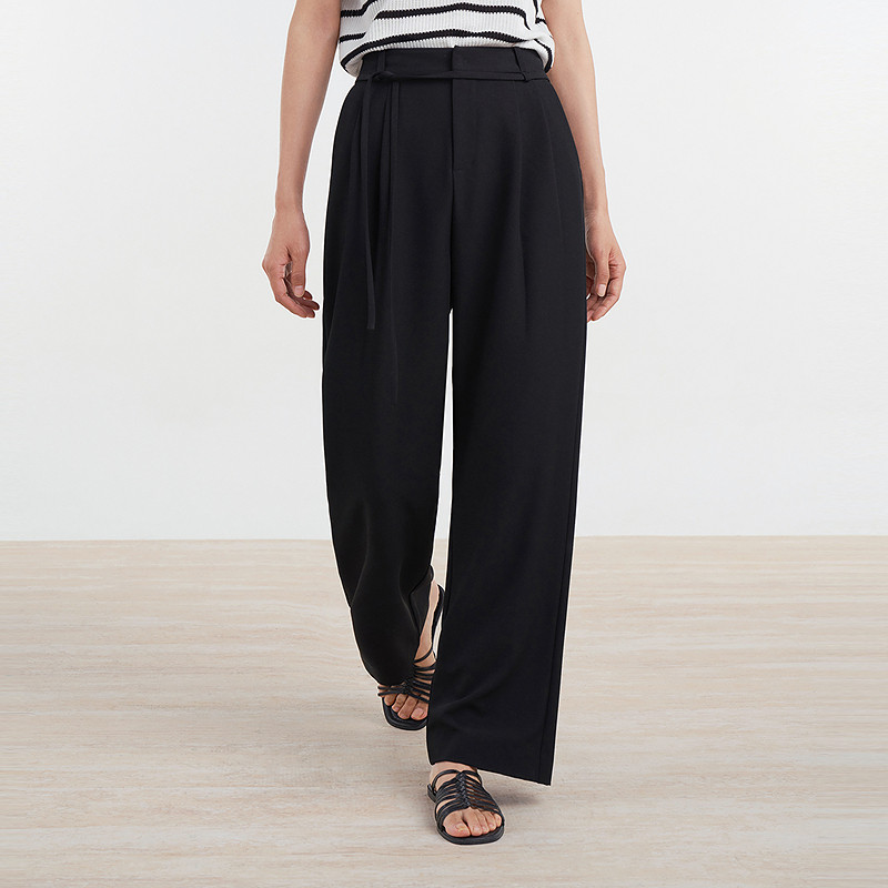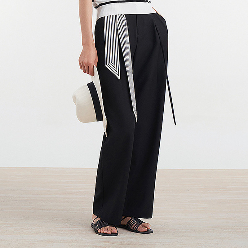 女通勤百搭休闲裤 易菲黑色斜纹阔腿裤 Yifini D04K1410 专柜同款