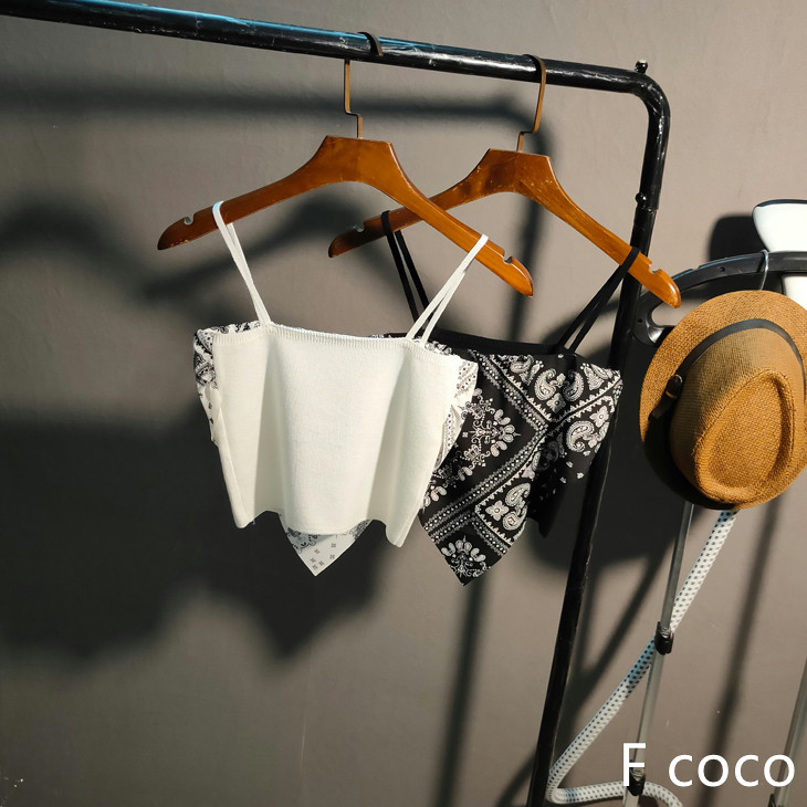 欧美风雪纺拼接不规则针织吊带女2025夏短款 背心 港风休闲无袖