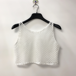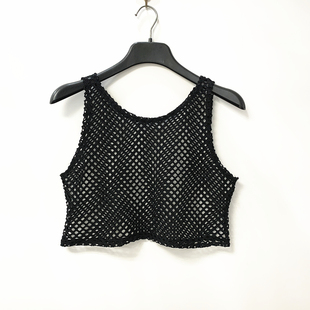 蕾丝衫 欧美夏新品 网格镂空半身上衣宽松露腰网眼渔网角色扮演时尚