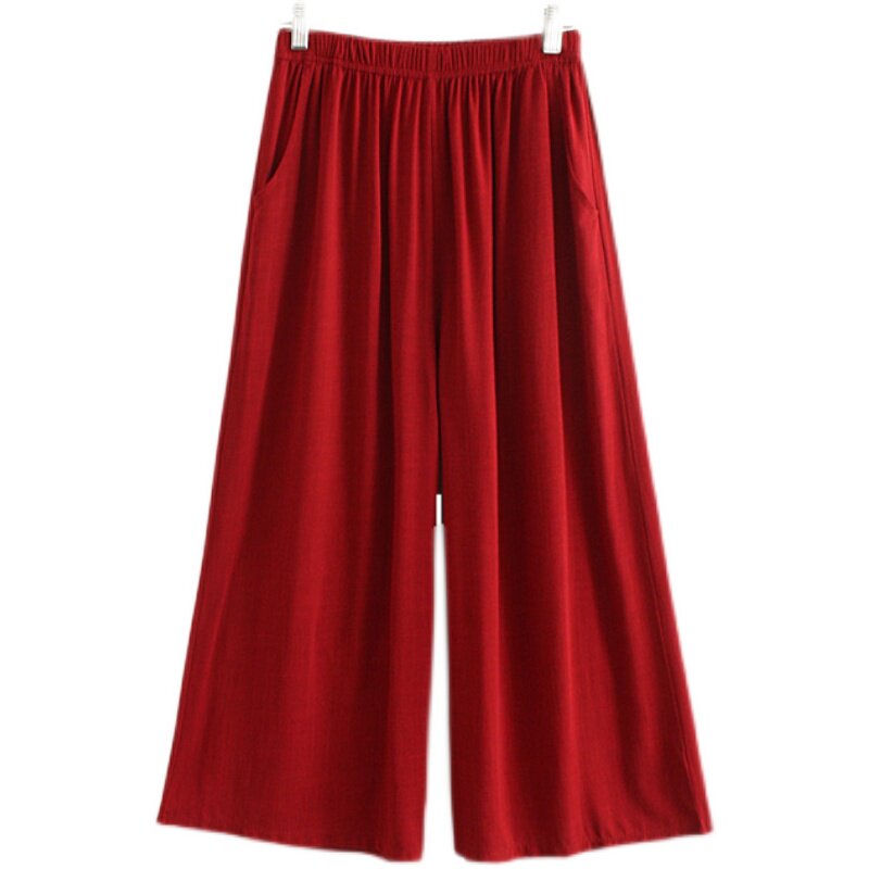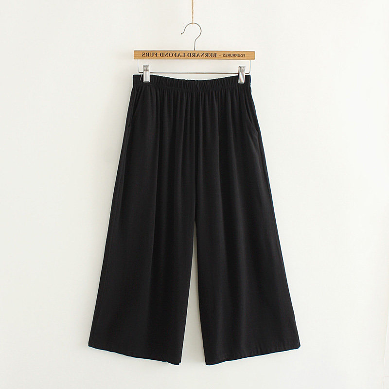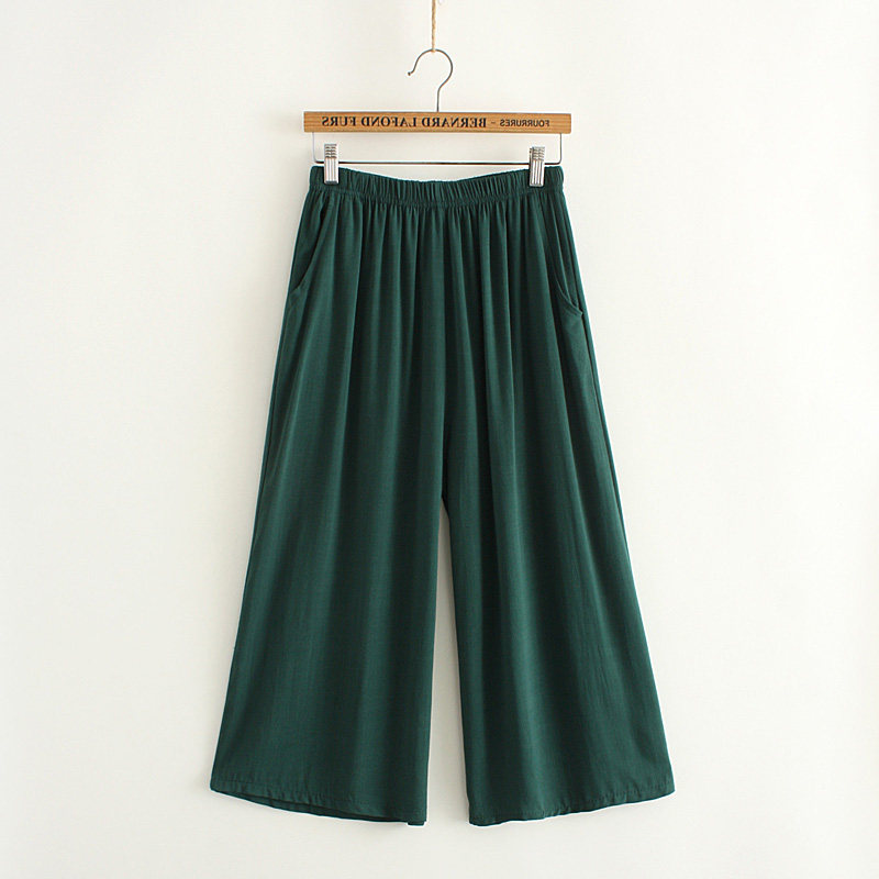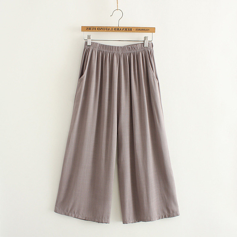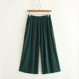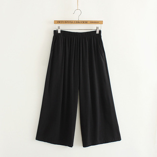 休闲裤 时尚 胖女九分裤 女直筒纯色宽松显瘦大码 夏天 外穿棉绸阔腿裤