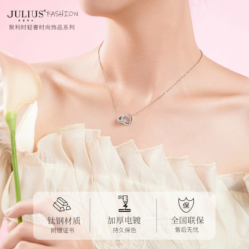Julius 聚利时环环相扣项链女轻奢小众设计高级感锁骨链生日礼物