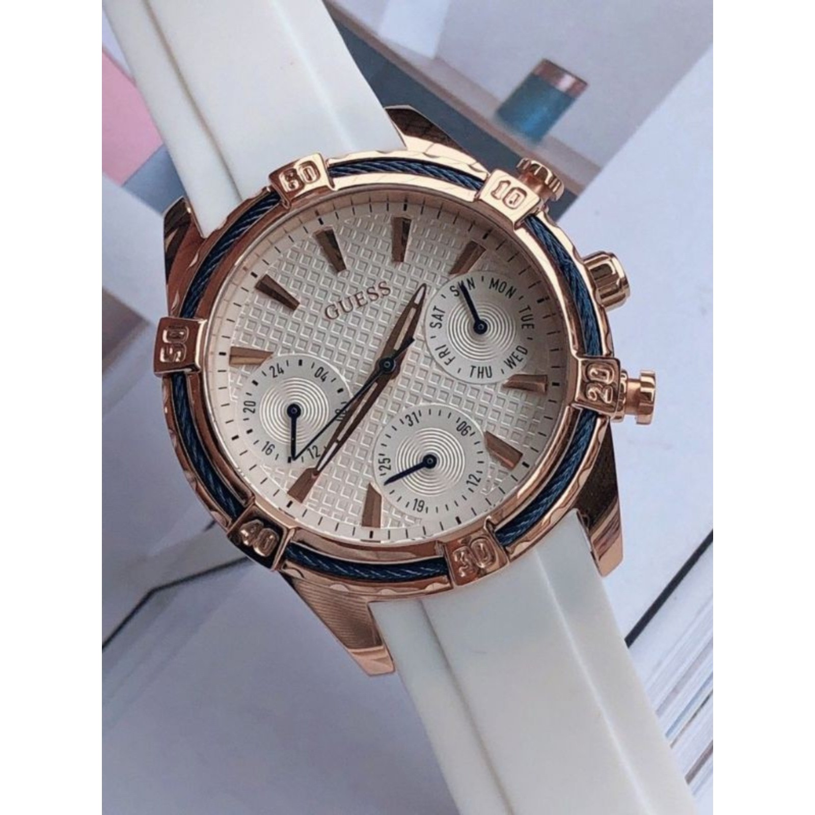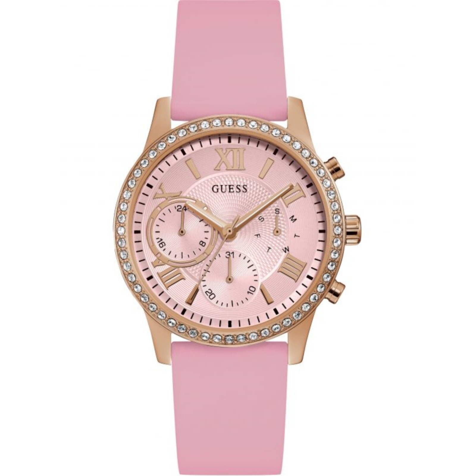三眼计时运动欧美硅胶表带石英 盖斯GUESS手表女时尚 原创正品 新款