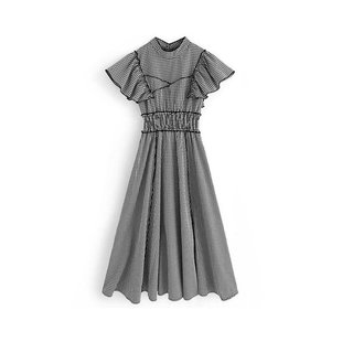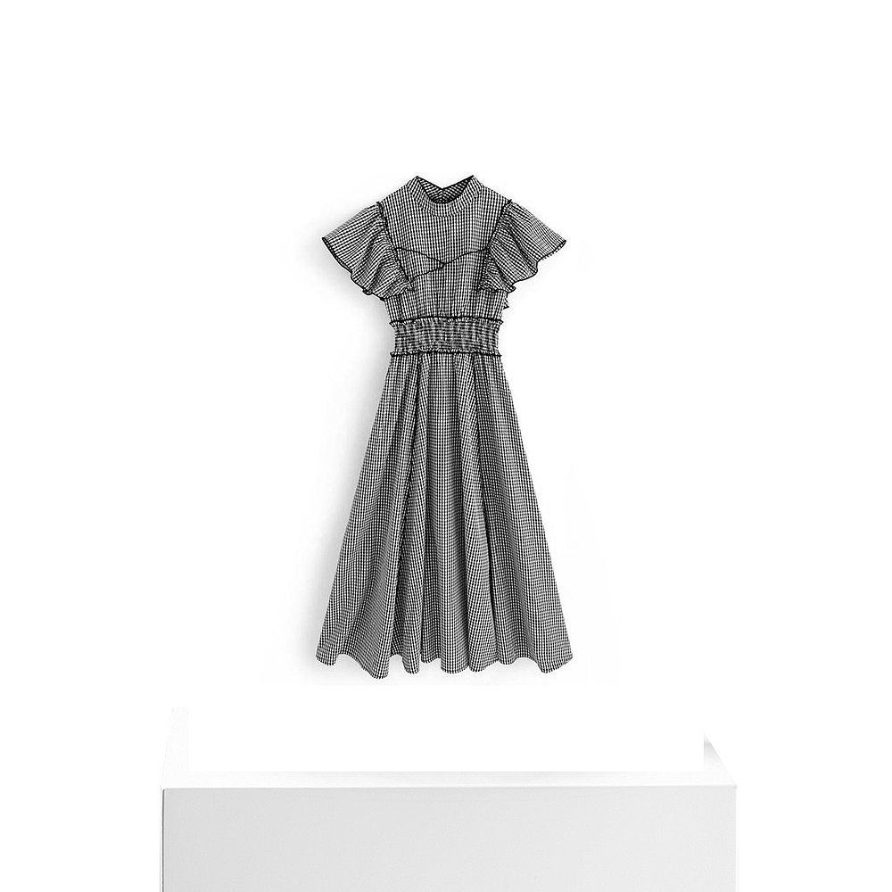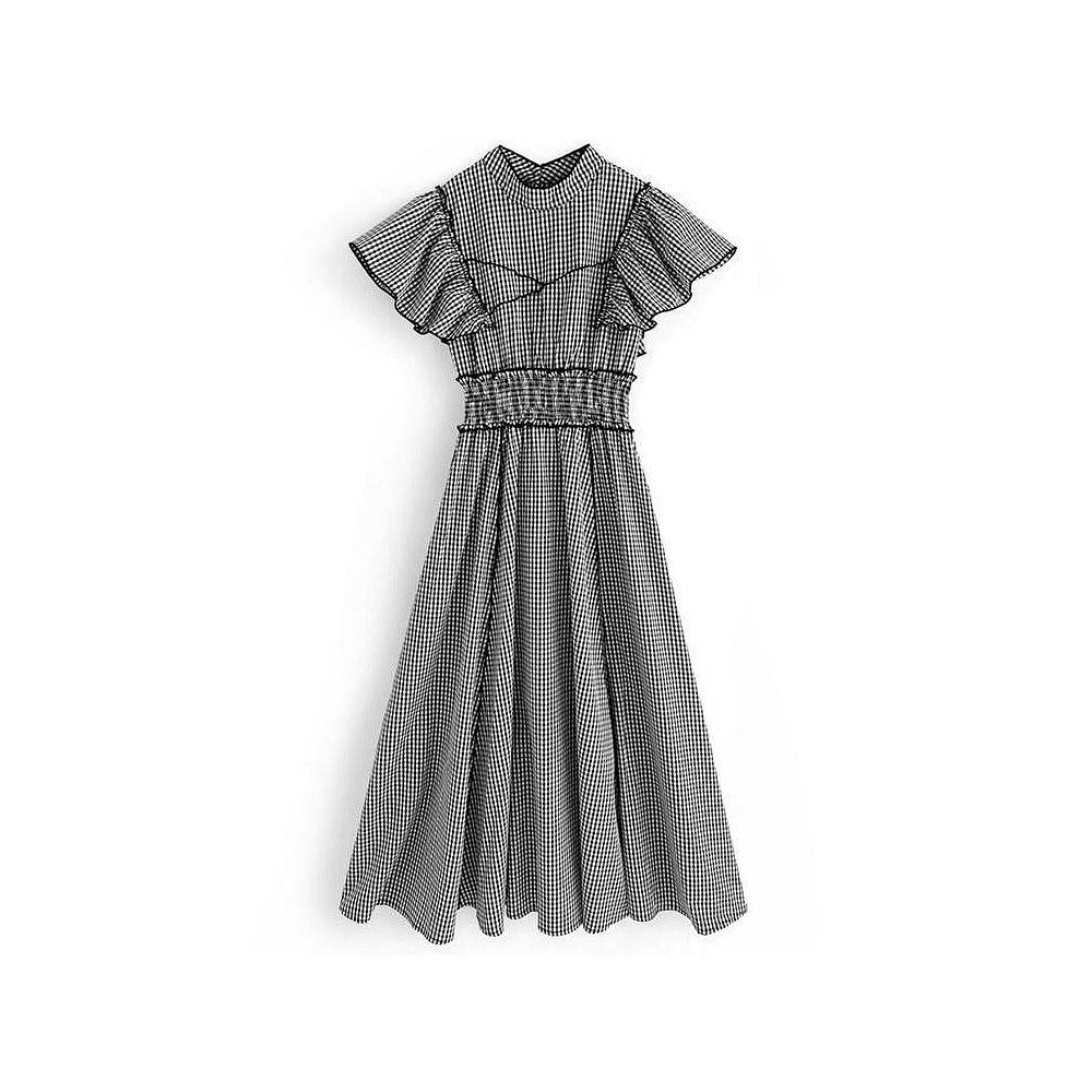 喇叭裙连衣裙 格纹荷叶袖 at1975 GRL 日本直邮日潮