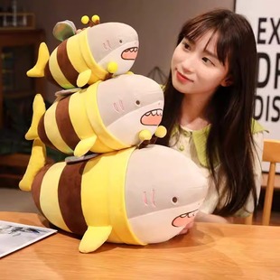 网红小鲨bee抱枕搞怪创意毛绒玩具公仔鲨鱼蜜蜂玩偶娃娃男生礼物
