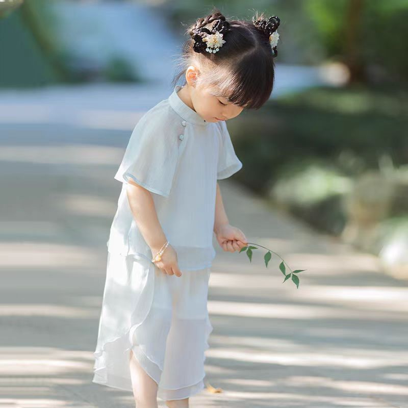 新中式 SC349女童夏季 休闲短袖 上衣裤 现货 裙套装 海盐