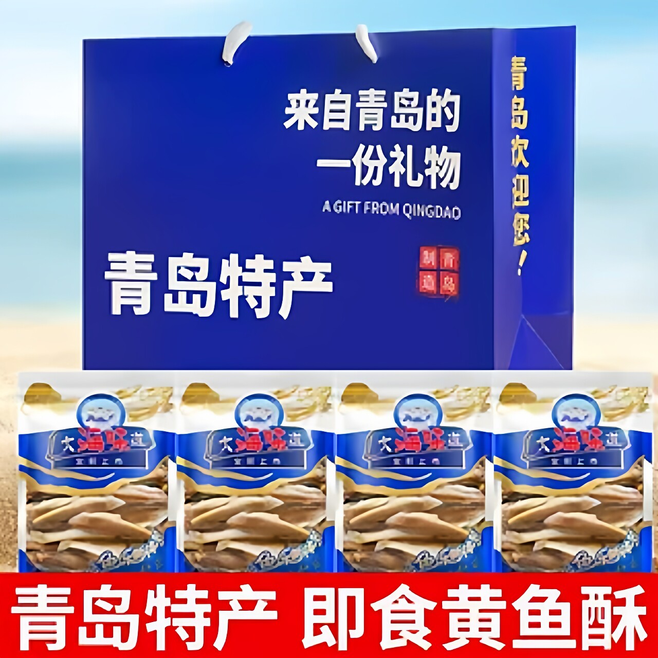 山东青岛礼袋烘烤圆片小黄鱼干即食小吃青岛特产鳕鱼片海鲜零食