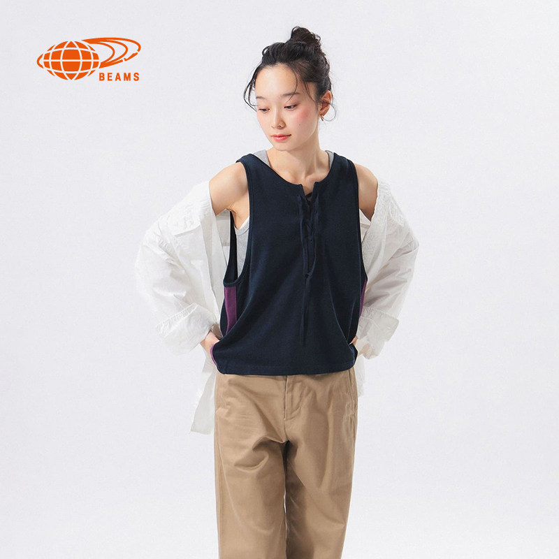 时尚 BEAMS 新款 圆领吊带背心2025夏季 活力绑带领口上衣 BOY女装