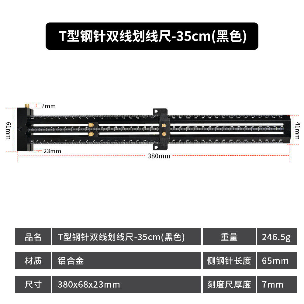 垂直画线t平行过线孔划 t型带钢针双线划线尺 14inch画线尺型