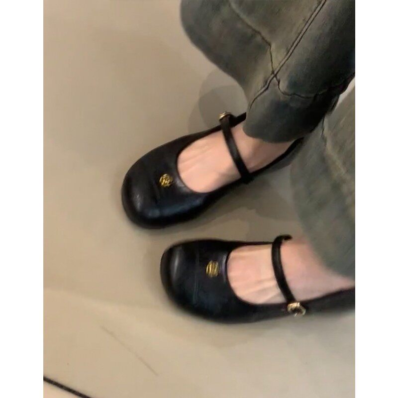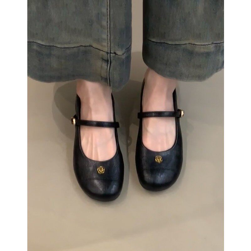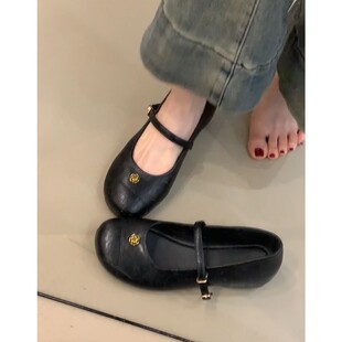 小皮鞋 羊皮版 百搭浅口单鞋 女法式 真皮圆头山茶花内增高玛丽珍鞋