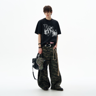 MADWITCH美式 T恤男女宽松休闲vintage痞帅上衣潮 复古做旧印花短袖