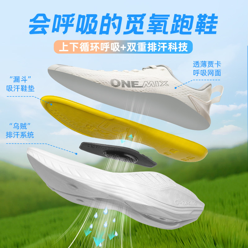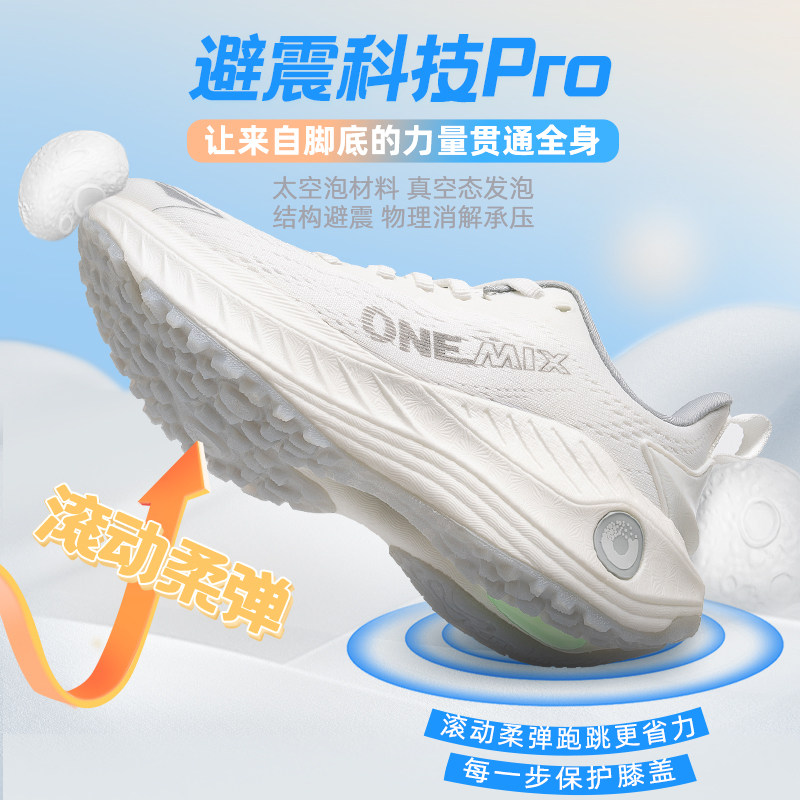 厚底减震回弹稳定支撑网面透气软底运动鞋 男款 跑步鞋 李宁悠适