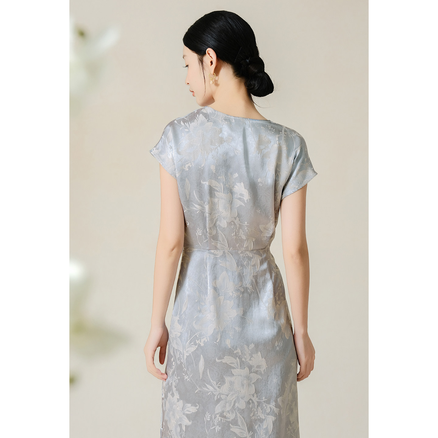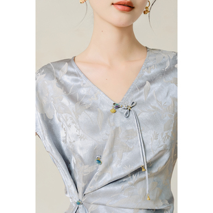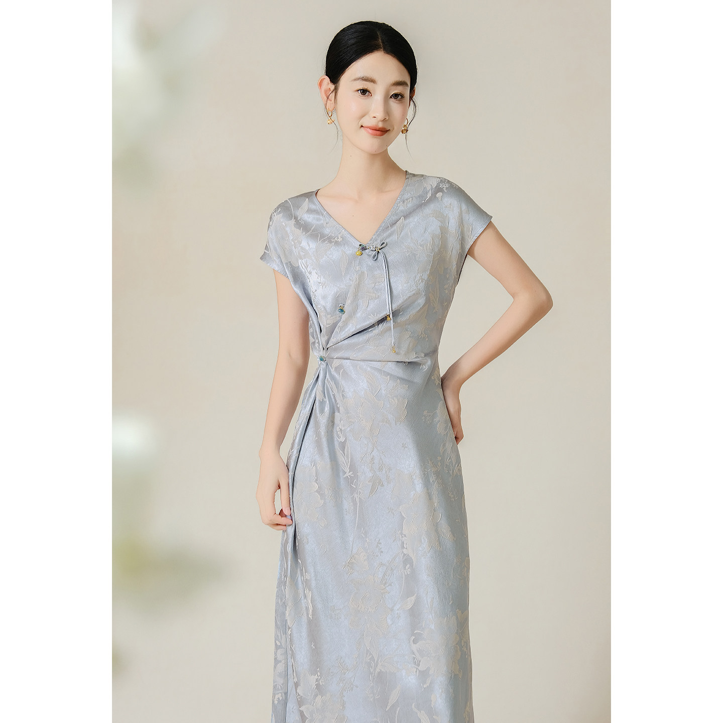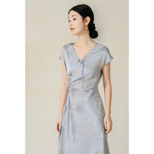 V领独特漂亮清冷高级感优雅国风提花长裙 新中式 SHIBAI拾白 浮筠