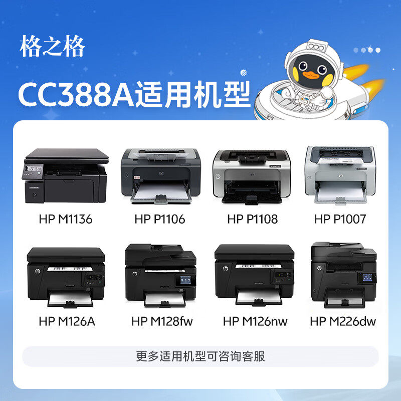 88A晒鼓M1213nf P1108 P1106墨粉1008墨盒1007激光CC388A硒鼓碳粉 格之格388a硒鼓适用惠普m1136硒鼓M126a
