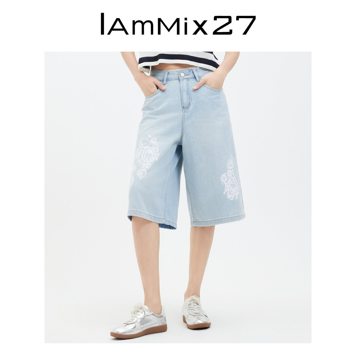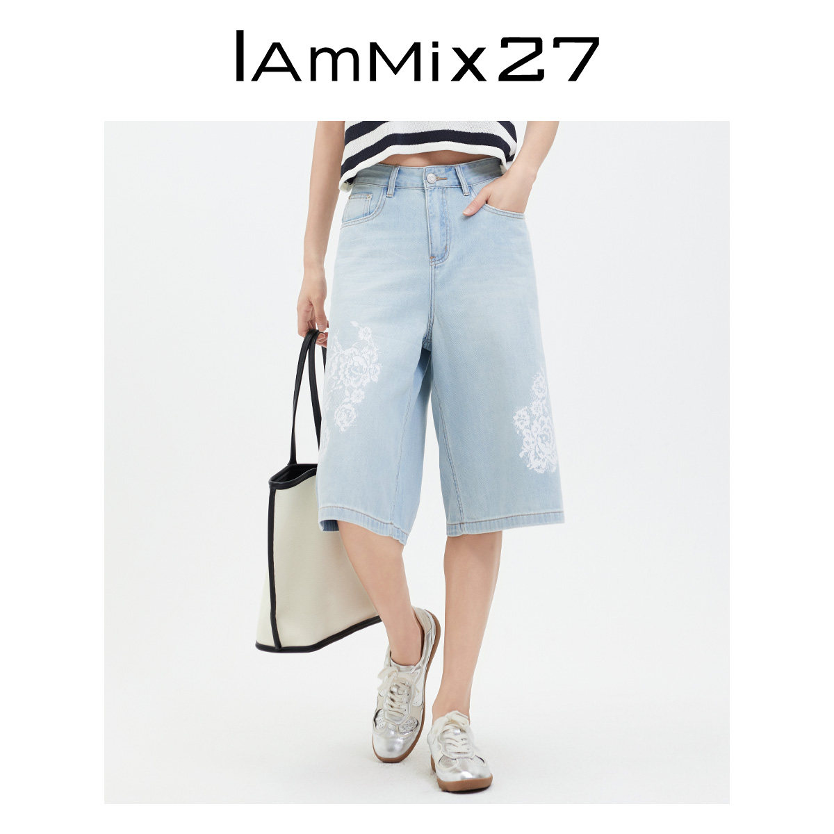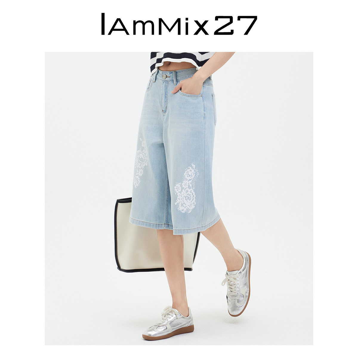 女短裤 合集 女宽松休闲百搭蕾丝绣花阔腿直筒裤 五分牛仔裤 夏季