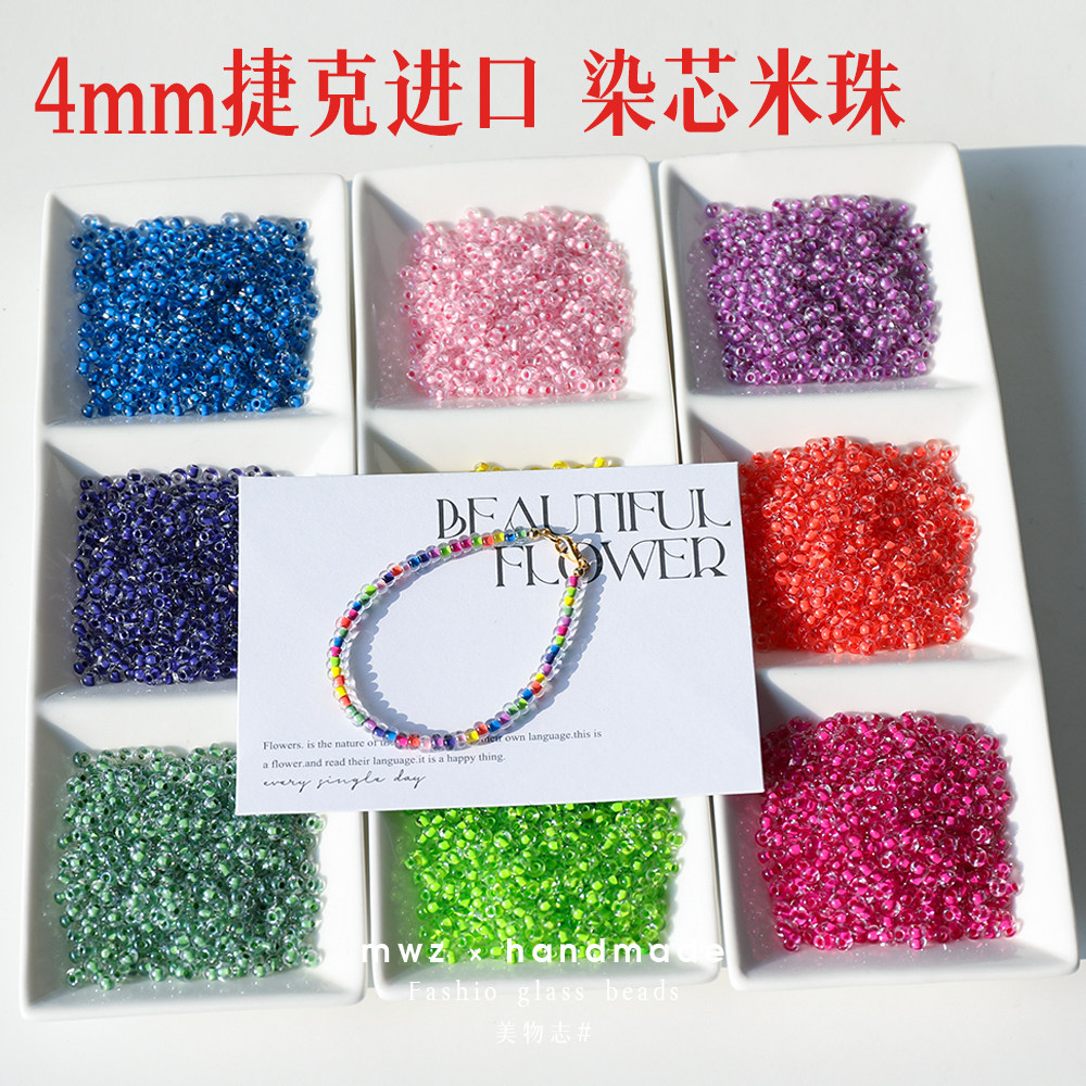 4mm 捷克进口米珠透明染芯粉红色手工DIY串珠手机链项链材料配件