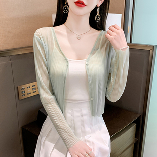 短款 雪纺薄纱防晒开衫 吊带外搭V领长袖 薄款 小披肩上衣外套 女夏季