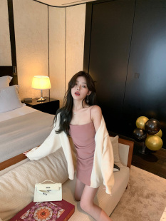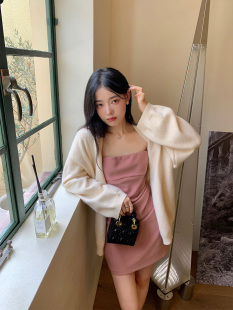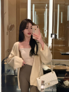 中长款 白色慵懒风宽松针织开衫 长袖 韩版 毛衣上衣 外套女春秋季