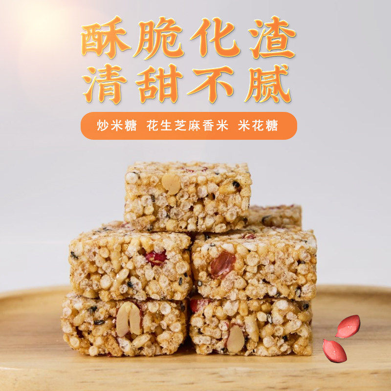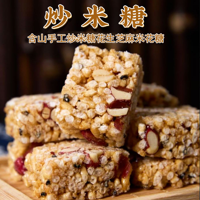 安徽特产含山手工炒米糖花生芝麻香米酥米花糖传统手工制作零食酥