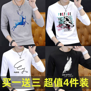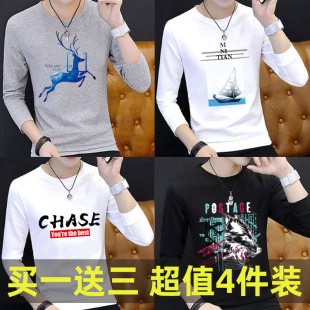 打底衫 夏秋长袖 秋衣宽松大码 体恤潮牌上衣服白T男士 T恤男圆领修身