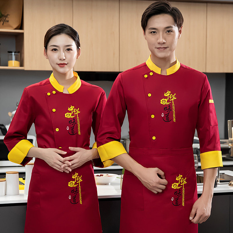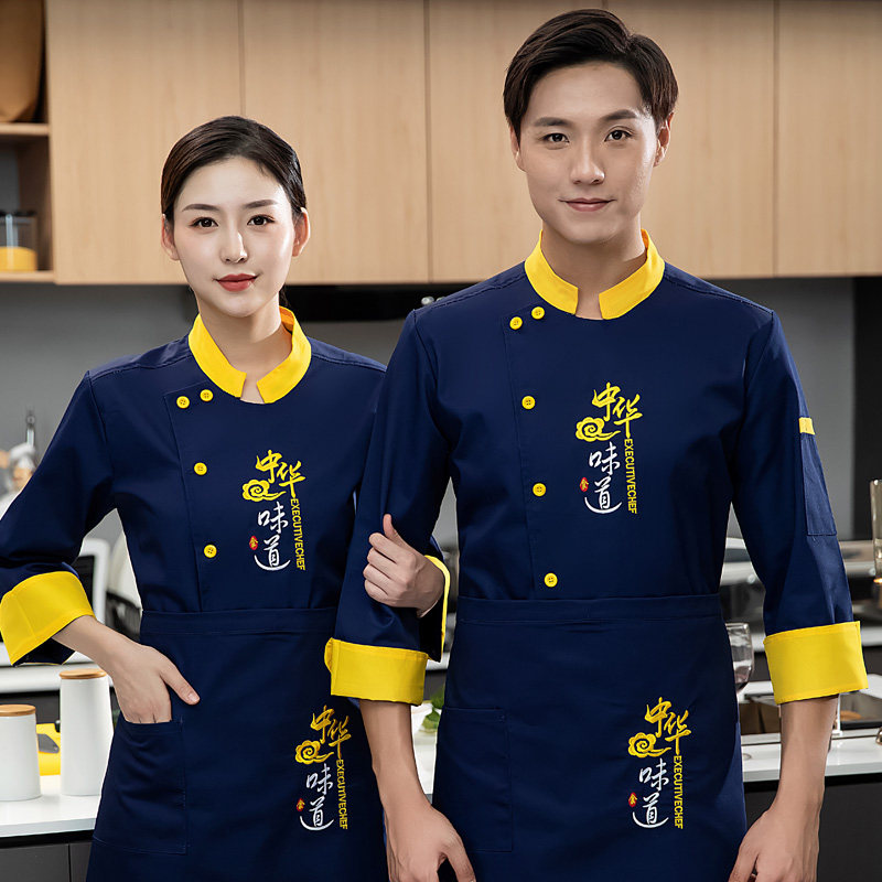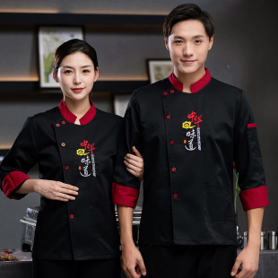 食堂餐饮饭店包子铺酒店火锅厨房防水工装 厨师工作服长袖 男女中式