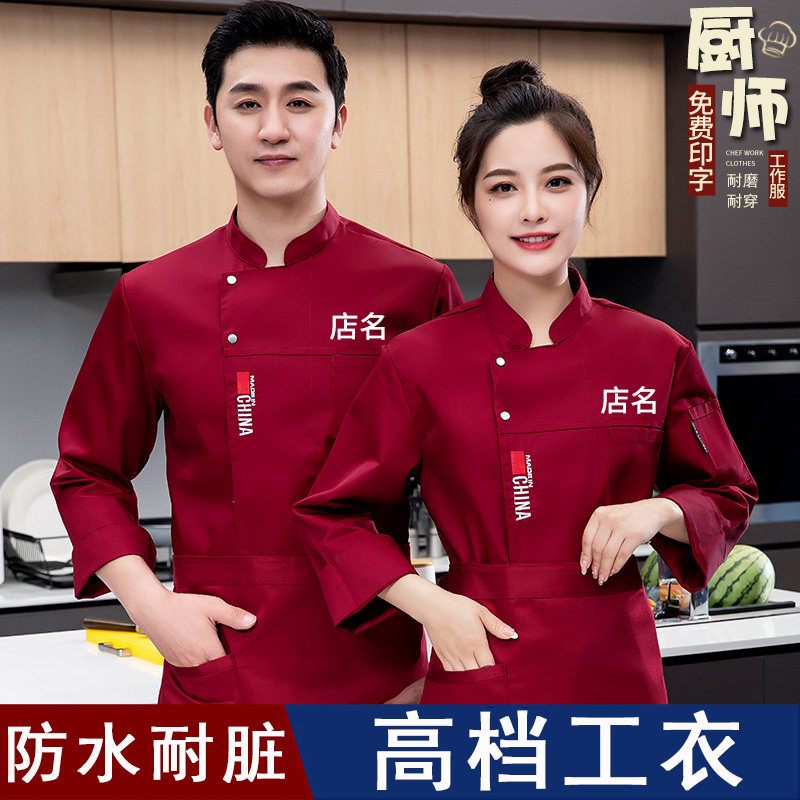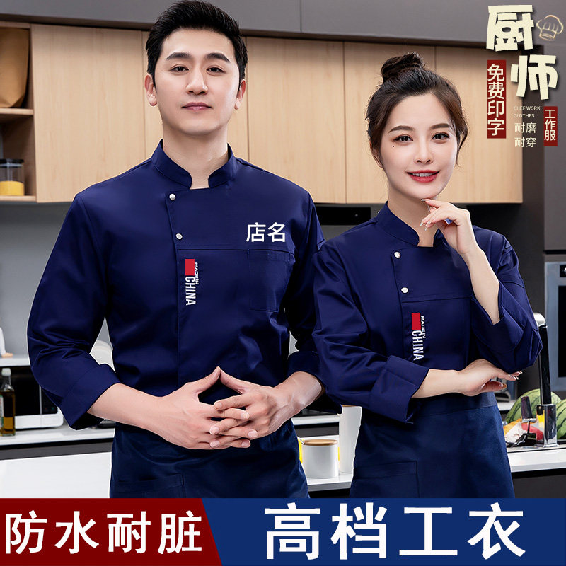厨房工衣定制女 餐厅食堂餐饮烘焙服装 防水厨师工作服长袖 男秋冬季